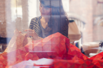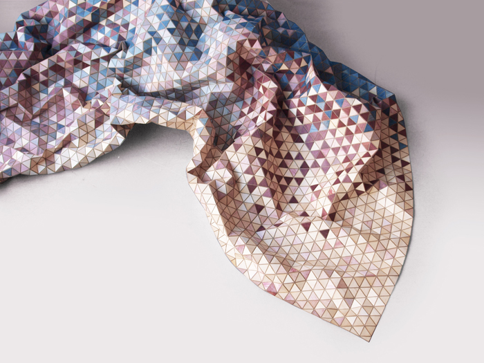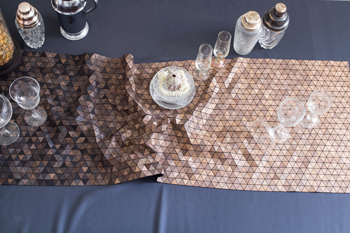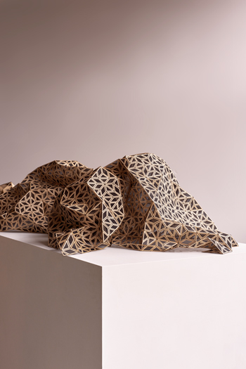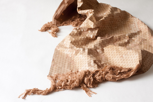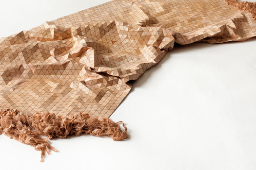 WOODEN TEXTILES The world around us is becoming increasingly immaterial. We are now used to write emails instead of letters, to pay online, to download music and touch virtual buttons on touch screens. We live in a society of images, a visual culture full of colours, advertisements, television and the internet. There is not much left to feel. Giving importance to surfaces that are desirable to touch can reconnect us with the material world and enhance the emotional value of an object. From the perspective of a textile designer, Elisa Strozyk is researching ways to provide wood with textile properties in testing methods to make wood flexible and soft, or interweave textile elements. The outcome is a material that is half wood-half textile, between hard and soft, challenging what can be expected from a material or category. It looks and smells familiar but feels strange, as it is able to move and form in unexpected ways. The processes to design a flexible wooden surface are its deconstruction into pieces, which are then attached to a textile base. "Wooden Textiles" is an approach to responsible thinking concerning lifecycles of products. |