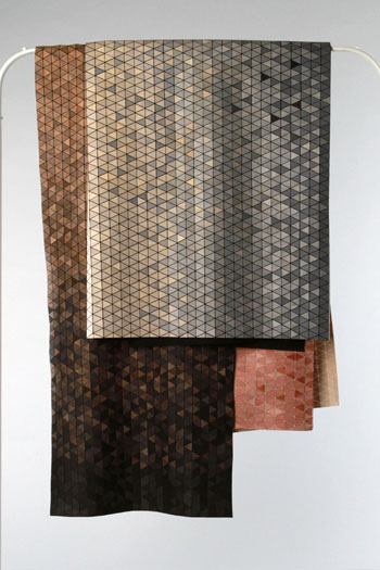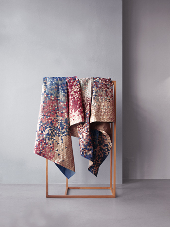 " D Y E D - W O O D E N - T E X T I L E S " W A L L - H A N G I N G S / P L A I D S materials: wood (dyed maple wood) , textile (cotton) size: 120 cm x 160 cm available in different colours. each piece is unique PHOTOS BY STUDIO BEEN |