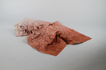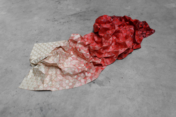 " wooden textile : F A D I N G - R E D " size: 130 cm x 250 cm |