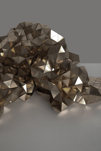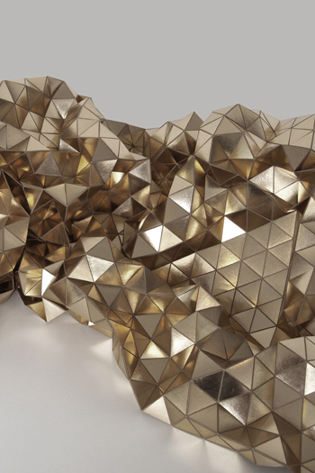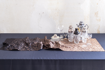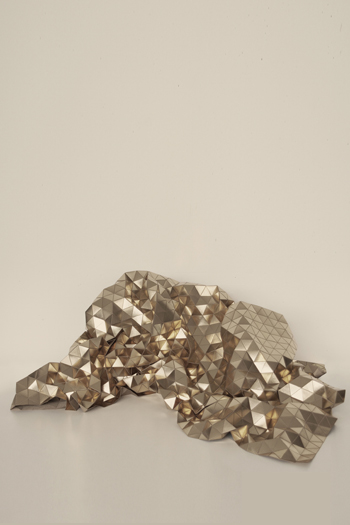 "FOLDED-MIRROR 2" STANDING-MIRROR-OBJECT MATERIALS: CORDERIET, CERAMIC GLAZES, POLISHED METALL SIZE(HxW):26cmx38,5cm SIZEmirror:H25cm,W22cm/22cm SIZE ceramic piece : 38,5 cm (Diameter) PRICE: 1150 EUR |