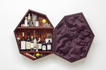 SEPTAGON BAR-CABiNET by Elisa Strozyk & Sebastian Neeb materials: wood: beech, palisander, padouk textile: viscose size: 61 cm x 81 cm x 15 cm LIMITED EDITION OF 10 PIECES |