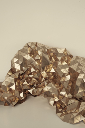 "FOLDED-MIRROR3" STANDING-MIRROR-OBJECT MATERIALS: CORDERIET, CERAMIC GLAZES, WOOD, POLISHED METALL SIZE(HxW):30cmx35cm SIZEmirror:H29cm,W17cm/17cm SIZE ceramic piece : 35 cm (Diameter) PRICE: 1150 EUR |