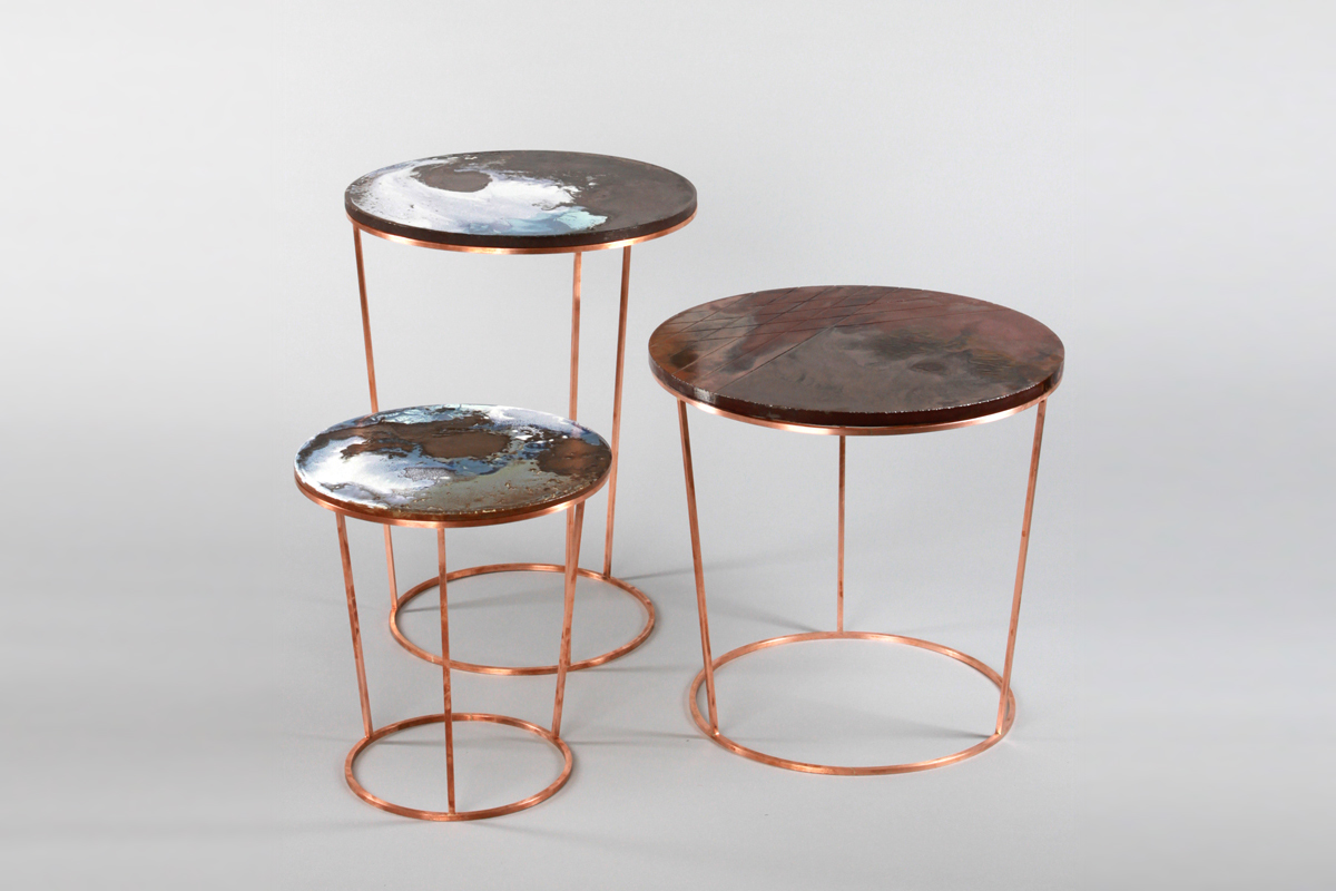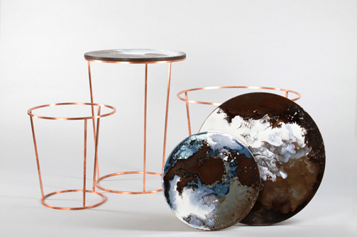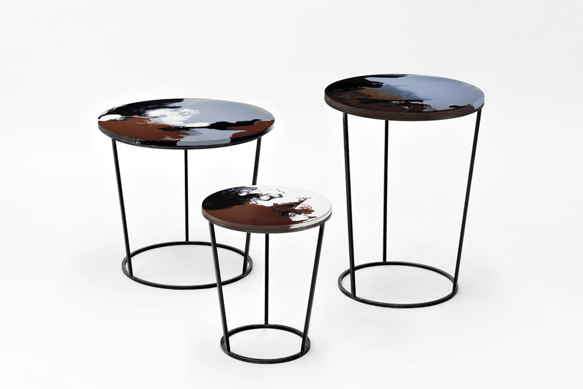 “ceramic – tables“ 2014 Glazing clay is one of the oldest techniques to decorate products of everyday life. The "ceramic-tables" are available in three different sizes, each tabletop is unique. |