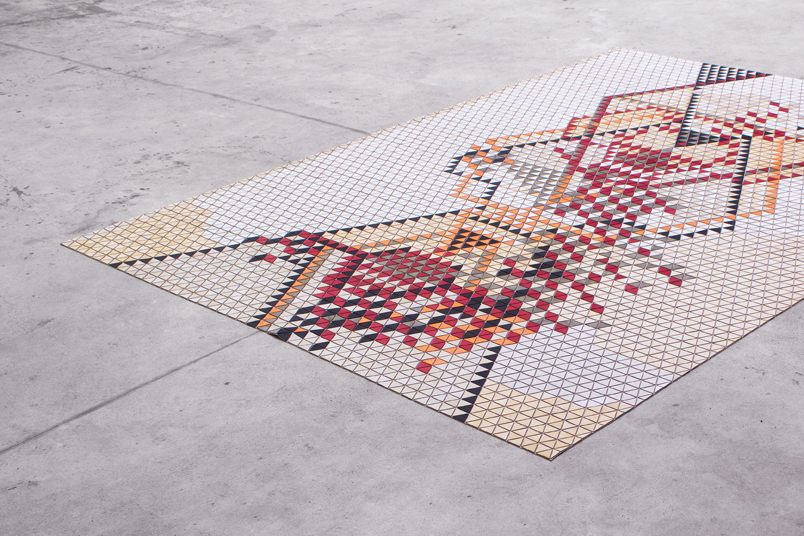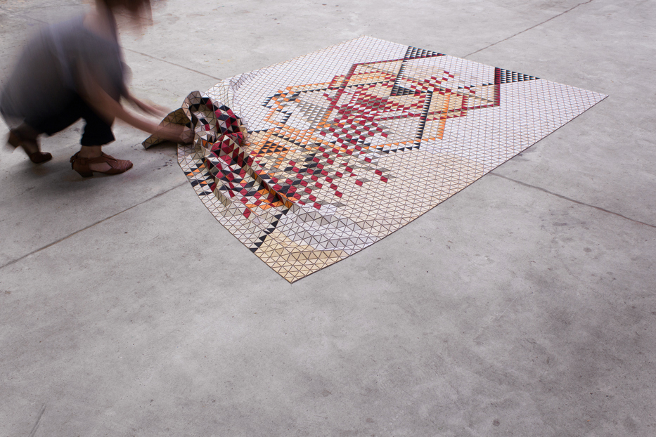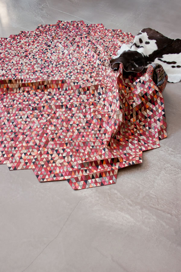 " L I M E T E D - R E D " wooden rug with dyed wood 170 cm x 240 cm |