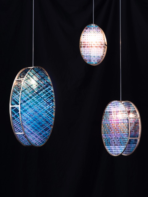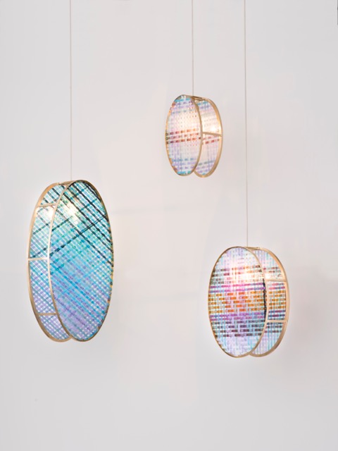 "W O V E N - G L A S S / P E N D A N T - L A M P S " by Elisa Strozyk "Woven-Glass" is approaching the material glass in applying the traditional technique of weaving. Limited Edition of 3 x 10 Pieces / 2015 / Fusing-Glass / Fusing-Stringer / Brass, unpolished / 23.62 x 13.78 x 3.94 inch / 15.75 x 11.81 x 3.94 inch / 11.81 x 7.09 x 2.36 inch / http://www.editionvantreeck.de/#products |